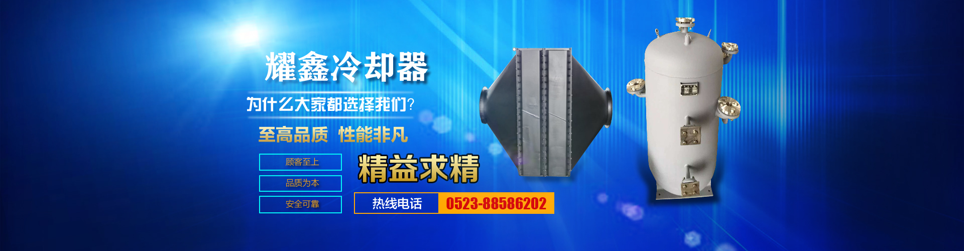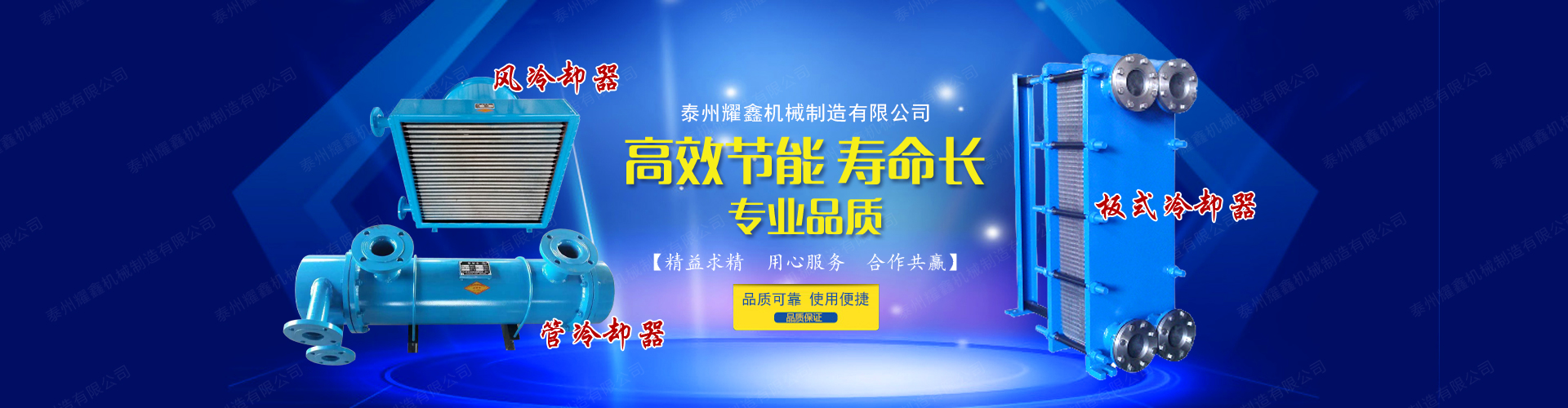 免費咨詢方案 +泰州耀鑫機械制造有限公司座落于風景如畫的江蘇魚米之鄉--全國文明城鎮婁莊鎮,是一家專業生產風冷卻器、列管式冷卻器、板式冷卻器的企業。本公司實力雄厚、制造設備精良、檢測手段完善、質量管理嚴密、系列產品齊全、質量可靠、價格合理,深受廣大用戶的信賴和好評。